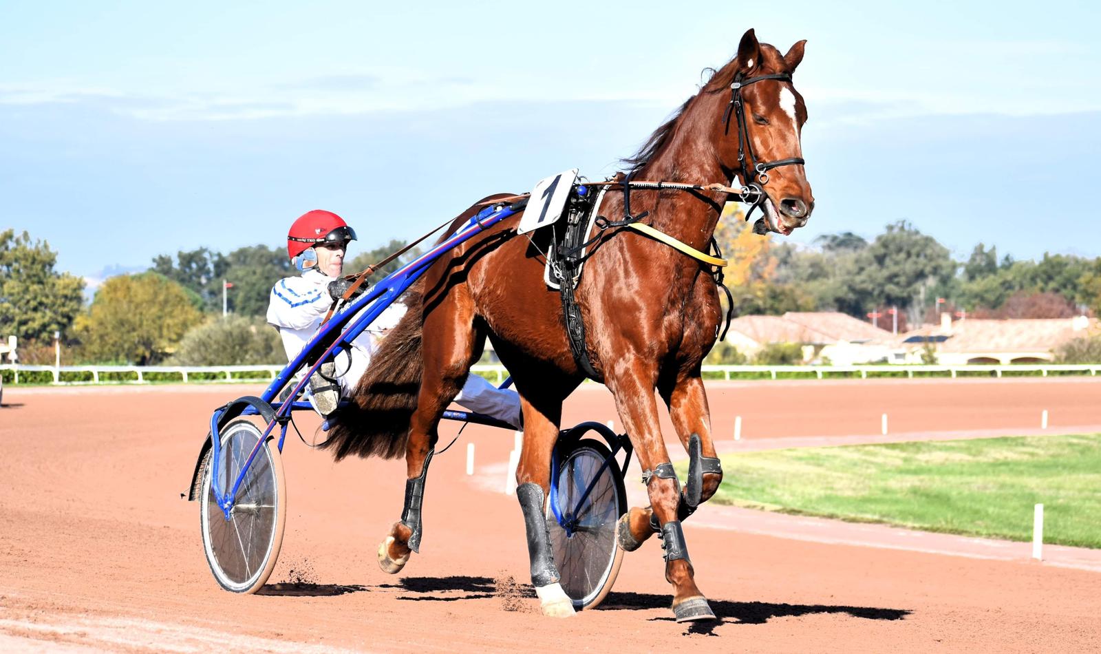 Femelle, Robe noir pangare par SAGE DE BRESLES 1’11’7 et CALIFORNIA CEHERE (par NI HO PED D’OMBREE 1’11’5)